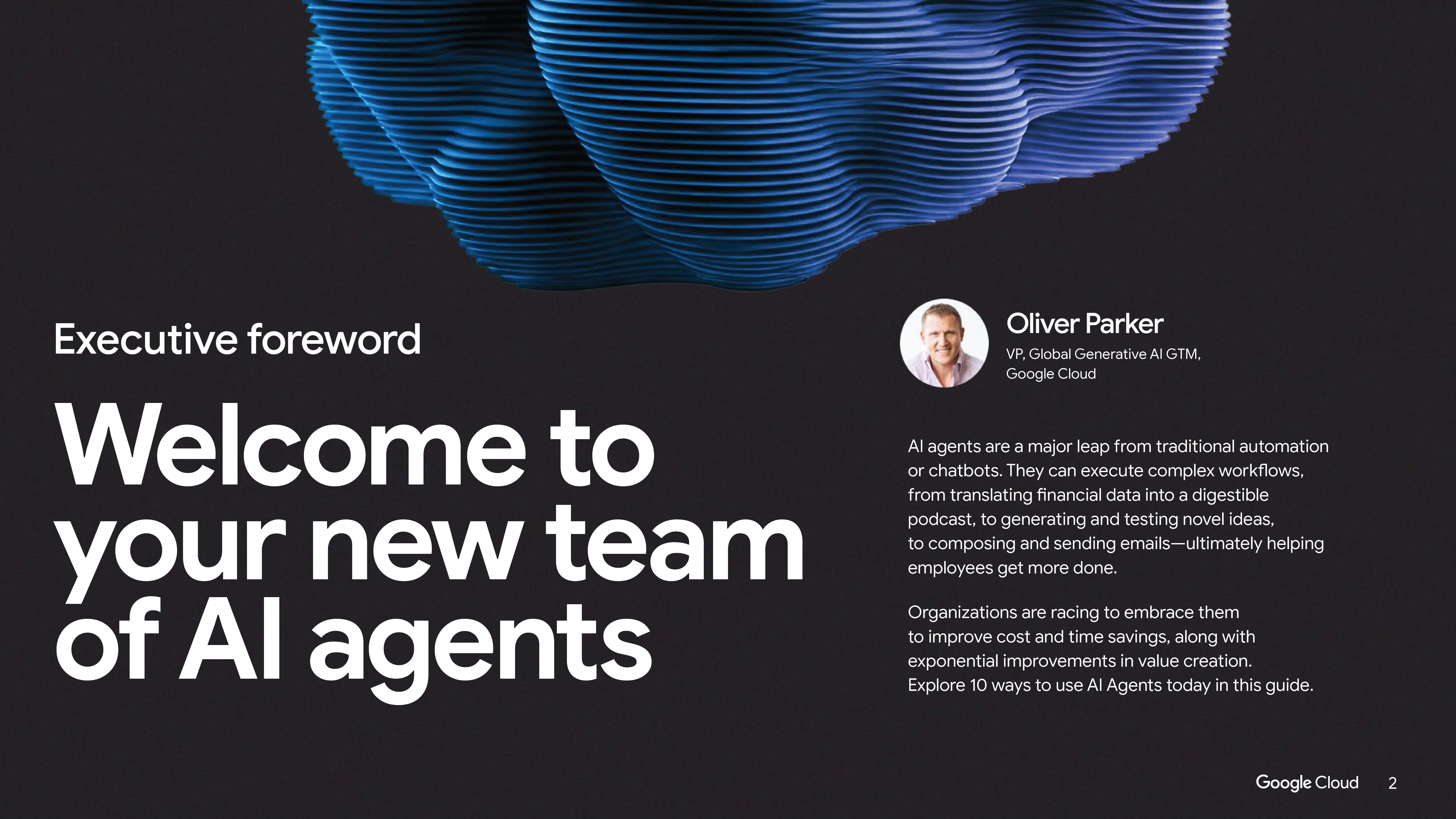 AI agents are a major leap from traditional automation or chatbots. They can execute complex workflows, from translating financial data into a digestible podcast, to generating and testing novel ideas, to composing and sending emails—ultimately helping employees get more done.
